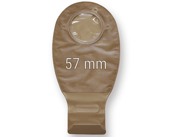 La Bolsa drenable par Colostomía es parte del sistema de dos piezas de bolsas desarrolladas por Convatec. Este sistema consiste en dos partidas distintas de base, una placa de protección y una bolsa de recolección removible, ajustable con cierre de velcro.