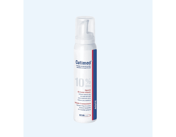 Cutimed ®ACUTE 10% Urea Cream Mousse presentación 125 ml es un humectante eficaz para pieles muy secas. Se puede aplicar tanto en zonas específicas como en todo el cuerpo. Reduce la aspereza de la piel y es adecuado también para pacientes con piel muy seca debido, por ejemplo, diabetes.
