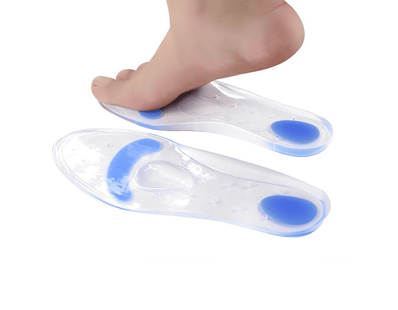 La plantilla de silicona está hecha de material de silicona de grado médico, suave, flexible y proporcionará un soporte duradero para el pie. Agradable a la piel y libre de olores. Útil en la absorción de golpes al caminar y correr reduciendo el impacto en las rodilla, articulaciones y espalda. La zona azul es más suave y puede proporcionar absorción adicional para aliviar el dolor y la presión. la plantilla es fácil de lavar y adecuada para la mayoría de calzado.